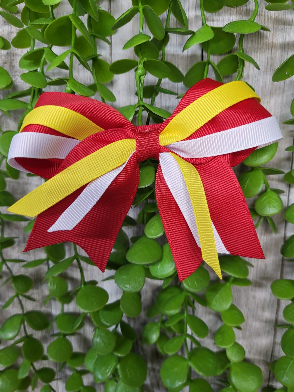 Cheer Bow - Baby Triple Ribbon Clip - Red Yellow White